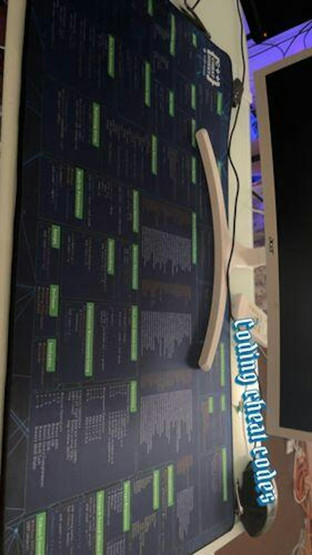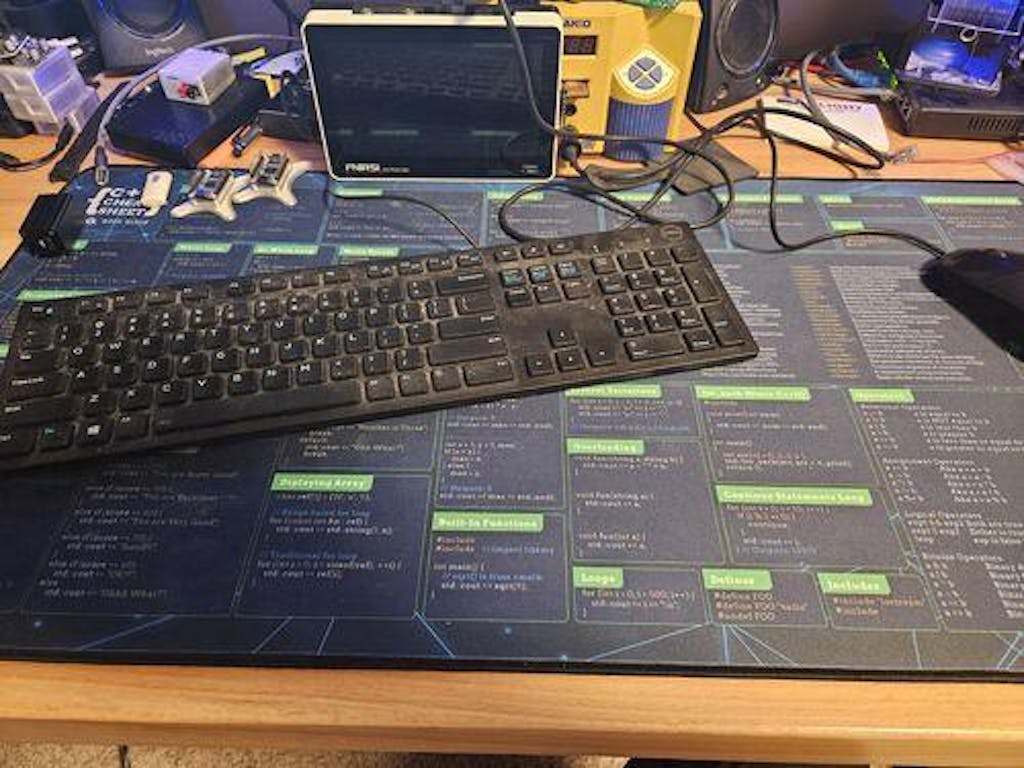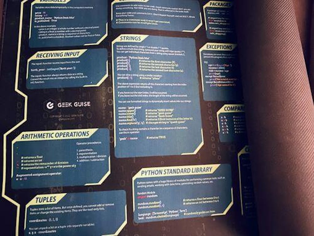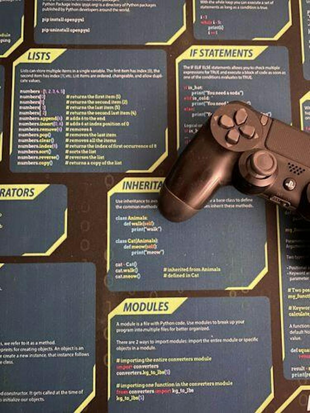 My review of the python desk mat. This mat is an excellent addition to your desk, if you are a developer. I've been looking for something like this for ages and I finally saw this on facebook 2 weeks ago. It's smooth and works well with my mouse. I find it helpful when I am doing back end development. The mat feels like good quality and I don't think it will have any significant wear and tear in a couple of year. I spilled a bit of coffee on due to the smooth surface it can easily be wiped off. The text is easy to read. I added a controller for size. 5 stars.
